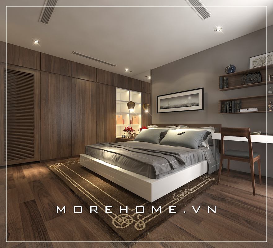 Nội thất phòng ngủ chung cư hiện đại gỗ công nghiệp được gia chủ lựa chọn phù hợp với sở thích và mức đầu tư của gia chủ