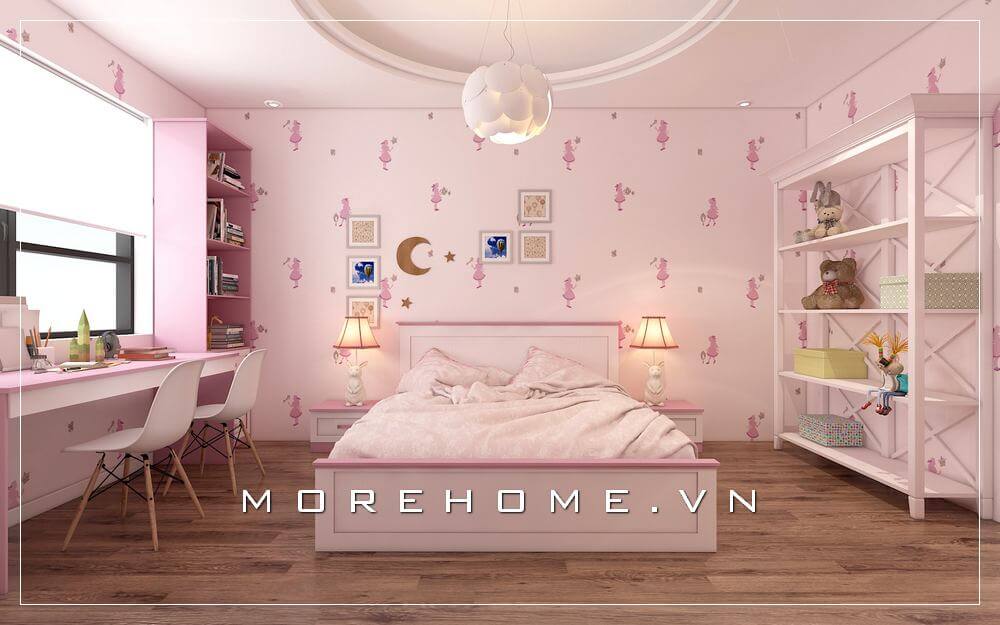 Morehome giới thiệu tới bạn mẫu thiết kế phòng ngủ bé gái đẹp với gam màu hồng phấn chủ đạo