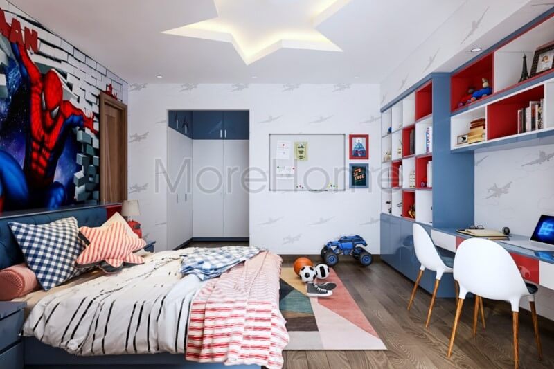 Thiết kế mẫu kệ tủ đa năng cho phòng ngủ giúp tiết kiệm được diện tích của căn phòng tạo không gian vui chơi thoải mái cho bé