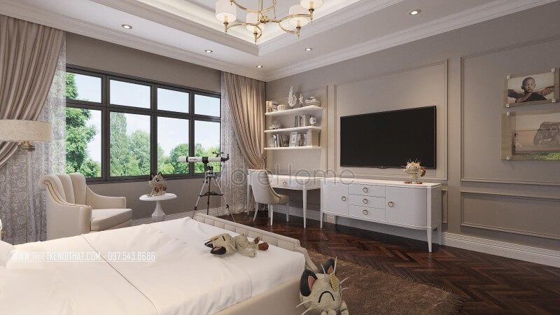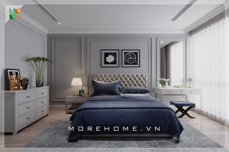 Thiết kế lựa chọn tủ ngăn kéo kích thước nhỏ để đồ trong phòng ngủ chung cư, nhà phố sang trọng một cách sáng tạo, không gây chiếm quá nhiều diện tích căn phòng vẫn đảm bảo được tính năng của tủ.