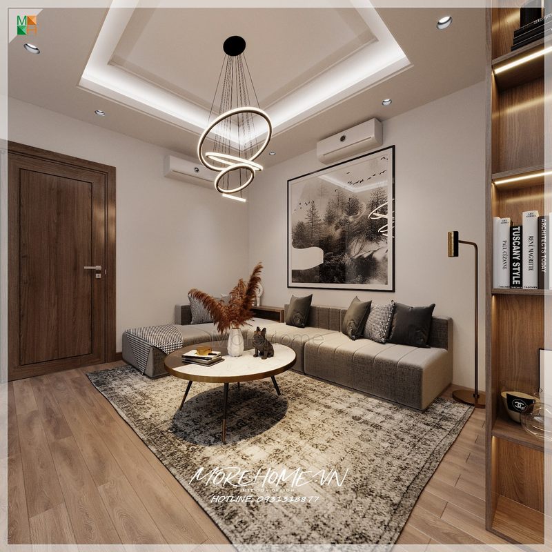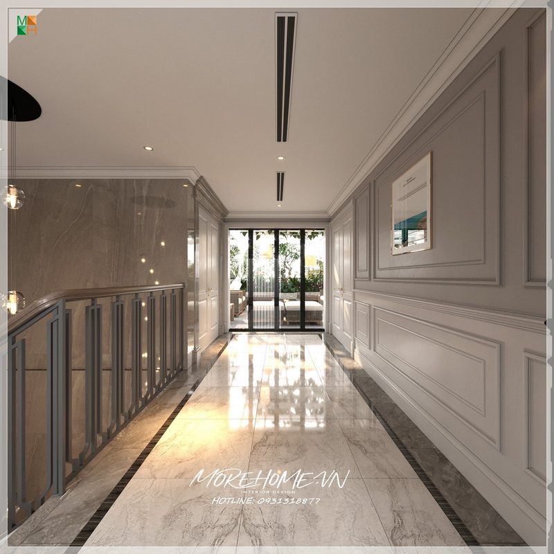 Mặt tường trung tính không quá sẫm màu để tránh cảm giác nặng nề và u ám. Không gian bên ngoài mặt tường được trang trí 1 bức tranh trưng bày tạo nên tính thẩm mỹ cuốn hút mọi ánh nhìn.