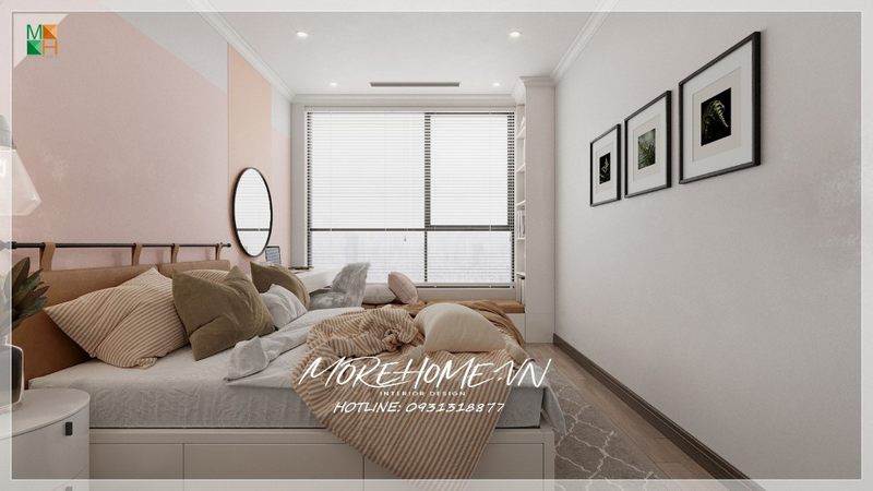 Giúp không gian phòng ngủ với nhiều sắc màu đan xen tranh treo tường đem tới nghệ thuật sinh động tô điểm thêm cho phòng ngủ.
