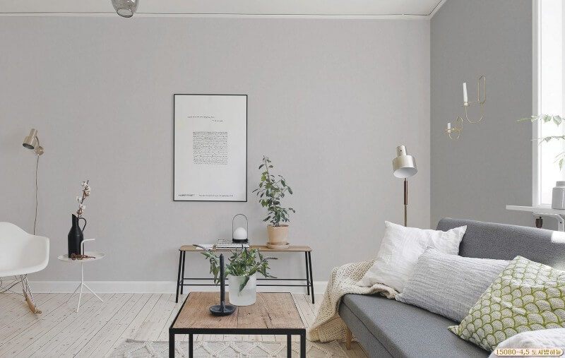 Mã giấy dán tường 15076-5 có những tone màu ghi nhạt và màu xanh cốm lạ mắt, còn có các mã số 15076-4 và 15076-3.